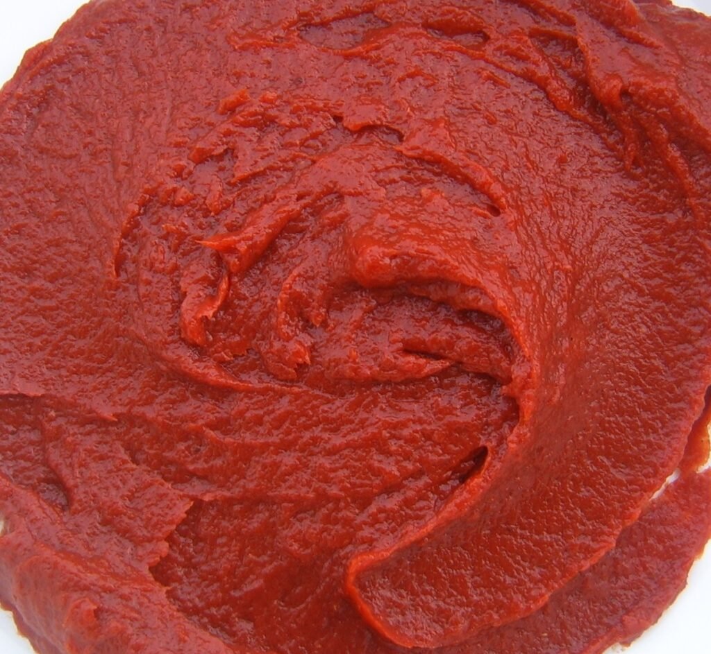 Concentrated product obtained from fresh, ripe tomatoes by pulping, filtering, and concentrating to a dry matter content of 30–32%. It is characterized by a dense red color, homogeneous structure, and authentic taste and aroma of ripe tomatoes.